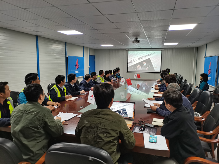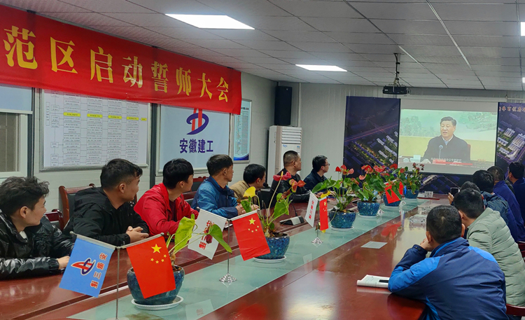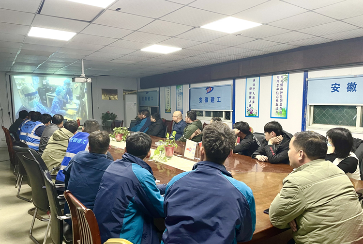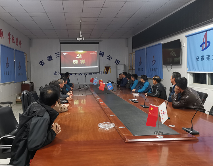在六安第一中學(xué)擴(kuò)建項目會議室,當(dāng)天晚上參與項目建設(shè)的四公司、安裝公司、門窗公司聯(lián)合組織項目黨員及管理人員集中觀看專題片。次日一早,裝飾也組織六安一中項目參戰(zhàn)管理人員集中收看專題片,汲取榜樣力量。