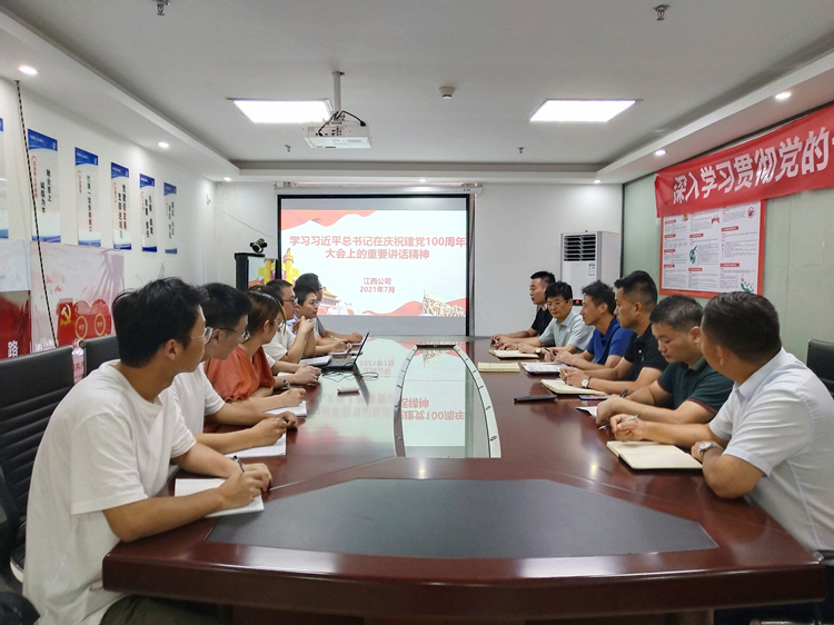 7月13日,江西公司黨支部組織機關全體人員深入學習習近平總書記在慶祝中國共產黨成立100周年大會上的重要講話精神。