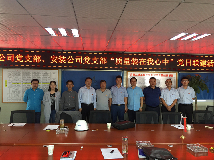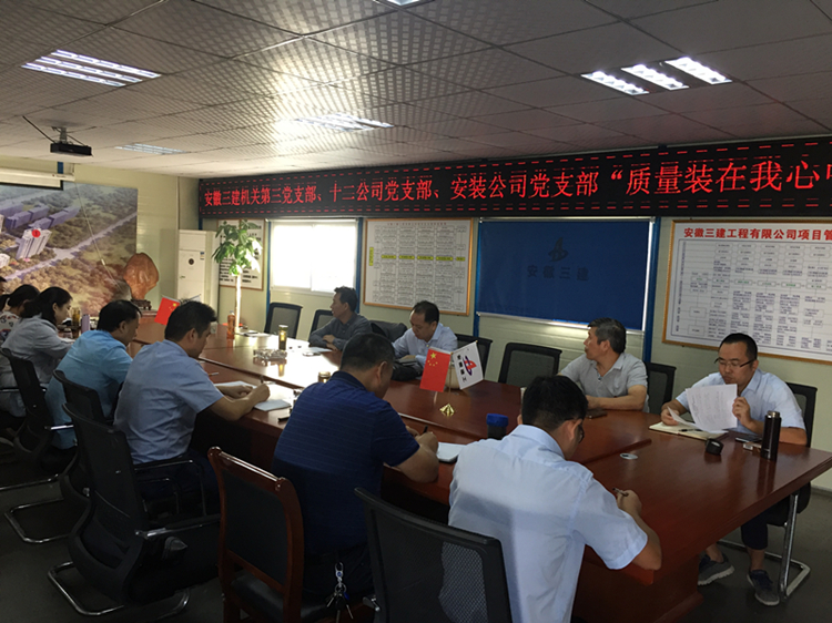 為了更好地落實全國的“質量月”活動,進一步提高公司員工的質量意識,提高公司總體質量水平。安徽三建機關第三黨支部、十二公司黨支部和安裝公司黨支部聯合開展主題為“質量裝在我心中”的主題黨日活動。十二公司經理周詩奎,技術質量部副主任潘文同,成本合約部以及安全生產管理部相關黨員和入黨積極分子共12人參加黨日聯建活動。