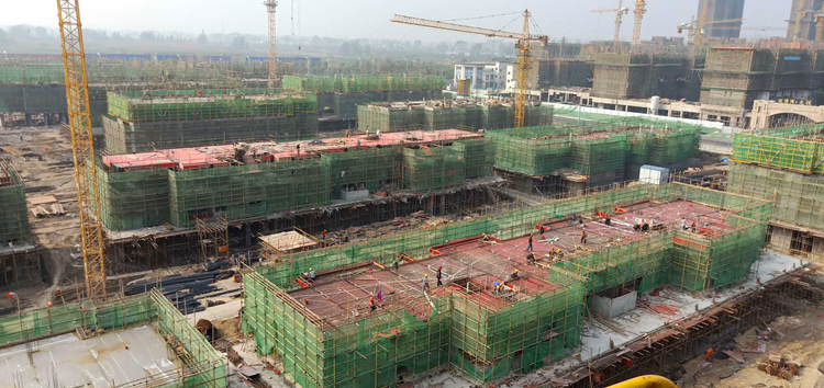 位于阜陽市城南新區的阜陽置地雙清灣小區項目占地面積近49萬平方米,其二期項目天鏡組團總建筑面積約20.3萬平方,地下建筑面積5.8萬平方米。今年7月底四公司進場開工。為了銷售的需要,業主方提出要在10月15日即兩個半月的時間里,全部28棟建筑都要達到完成一層結構的預售節點要求。而這兩個半月時間里,正趕上夏季高溫天氣、秋收農忙、開學季、中秋國慶雙節等多個不利因素,嚴重影響工程進度。