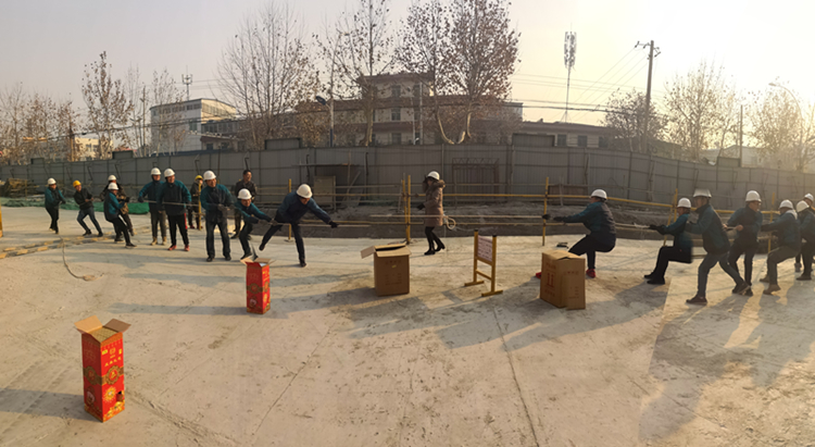 封頂儀式正逢元旦佳節,項目全體人員還舉行了拔河比賽和跳繩比賽,場面熱鬧非凡,把封頂儀式推向高潮。
