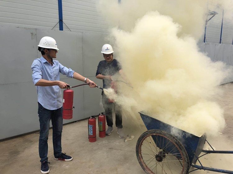 此次演練模擬了施工現場發生火災、人員緊急疏散,成功有序滅火的全過程。演練前,項目部安全員對項目人員進行了安全交底,做到演練分工明確、責任到人。演練中,隨著消防警報的拉響,項目人員迅速啟動應急預案,根據火勢情況采用干粉滅火、水滅火等實戰操作展開了撲救,先后完成了疏散、滅火、搶救等救援步驟。實戰演練后,大家現場總結經驗,分析完善了消防應急預案。項目安全員借現場情況分別對遇到火險如何應急、逃生等方面做了詳細的講解和示范,進一步強化了實戰能力。整個演練及培訓活動歷時半小時,施工現場井然有序,取得了良好的效果。