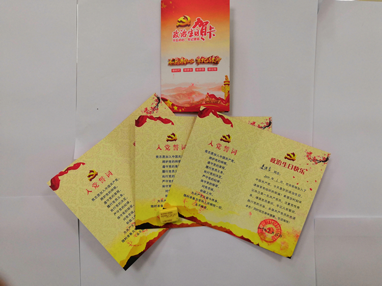 黨課結(jié)束后,黨支部組織幾名黨員同志集體過政治生日。支部為過政治生日的黨員精心準(zhǔn)備了賀卡,賀卡在祝賀的同時,提出了要求,讓黨員既感受到了組織的溫暖,又增強(qiáng)了責(zé)任意識。過政治生日的黨員還重溫了入黨誓詞,發(fā)表了“政治生日感言”。副經(jīng)理李紅軍激動地說道:“黨員過‘政治生日’”不僅是個特殊的儀式,更是一次心靈的洗禮,很感謝黨組織的多年的培養(yǎng)與關(guān)懷?!?/span>
