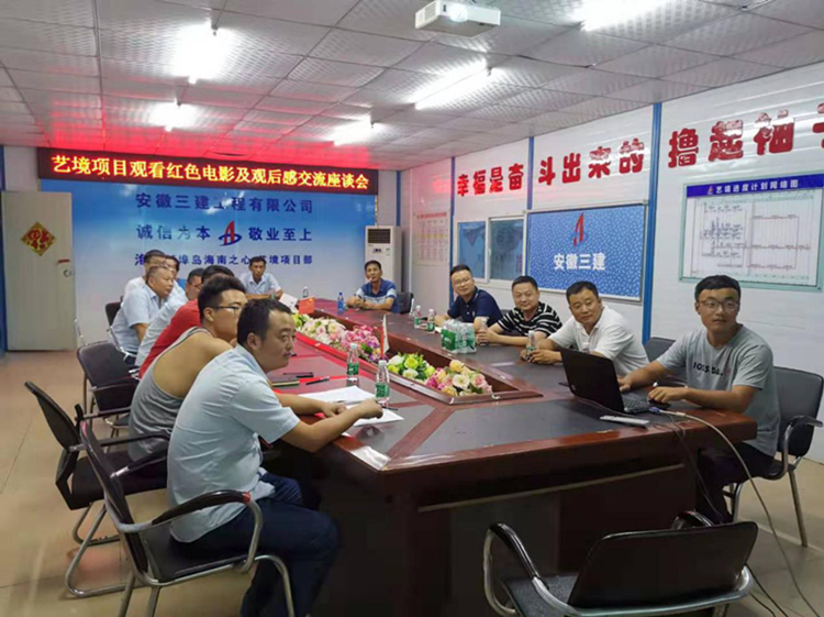 在公司深入開展“不忘初心、牢記使命”主題教育之際,一公司把學(xué)習(xí)教育向項目一線推進(jìn),2019年7月9日晚,在安徽三建海口新埠島海南之心-藝境項目利用晚間休息時間,在項目會議室組織集中觀看紅色電影《集結(jié)號》。項目經(jīng)理李俠和全體黨員及干部一起通過觀影感受戰(zhàn)爭年代中共產(chǎn)黨員忠于職守,勇于擔(dān)當(dāng)?shù)膫ゴ蟾锩閼选?/span>