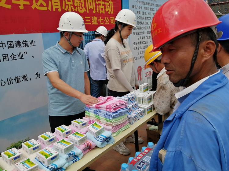 連日來,全國連續高溫,炎熱難耐,氣象臺多次發布高溫橙色預警,但在公司全國各地的項目部還在如火如荼地建設中,和西北公司一樣,為了保障農民工夏季防暑降溫工作順利進行,切實維護建筑工人的職業安全與健康權益,各分公司紛紛開展送清涼活動。
