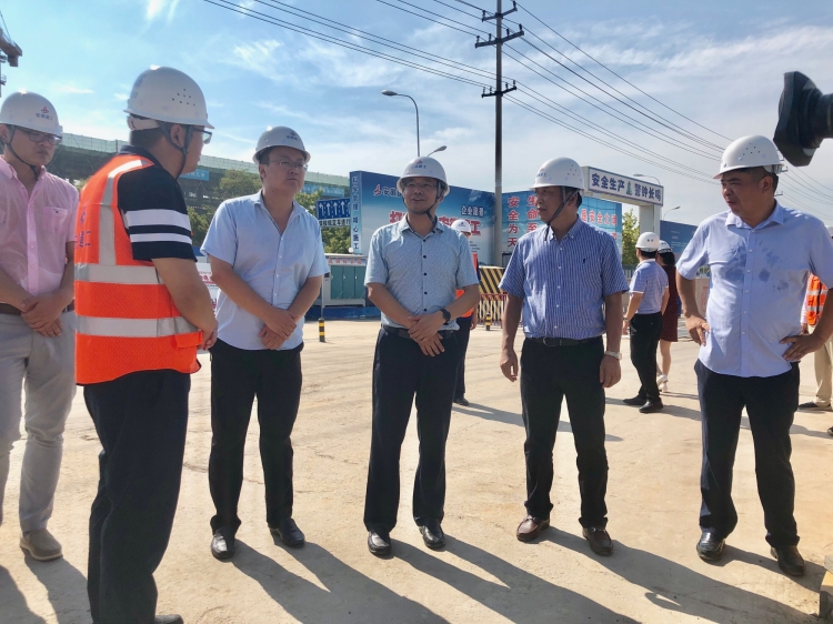 圖為黃韡一行在施工現場查看施工進展情況并指導工作