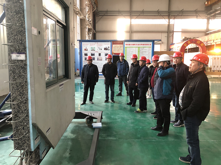 隨后,孫俊中一行來到安徽建工建筑工業(yè)有限公司,參觀了產業(yè)化構件生產線,詳細了解了建筑產業(yè)化PC構件的生產工藝流程以及一體化施工的有關環(huán)節(jié)。孫俊中一行人還在工業(yè)公司會議室和有關人員開展了座談交流,王興明介紹了建筑產業(yè)化施工過程中的有關措施及管理,并詳細講解了安徽三建裝配式建筑生產施工情況。