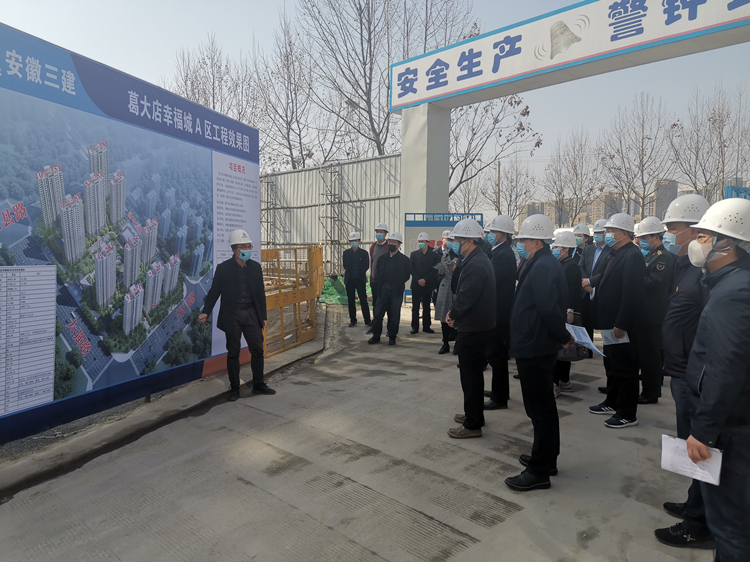 3月20日下午14時30分,包河區政府組織觀摩團到重點民生工程葛大店幸福城A區項目了解項目建設情況。觀摩團由區委書記葛銳帶隊,包河區政府機關各部門主要負責人及部分居民代表等60余人組成,建設方包河建發公司副總經理張寅陪同觀摩。