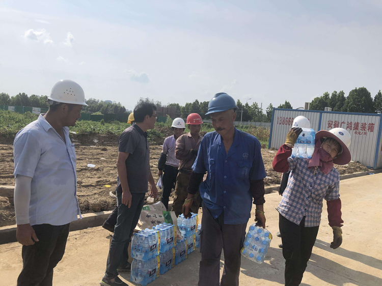 自入伏以來,安徽各地驕陽似火、氣溫不斷攀升。華力勞務公司立即開展夏日“送清涼”慰問活動,為省內項目駐點人員和工人們送去礦泉水、茶葉、綠豆和白糖等防暑降溫物品,在炎炎夏日里為奮戰在一線的職工送去關心和慰問。