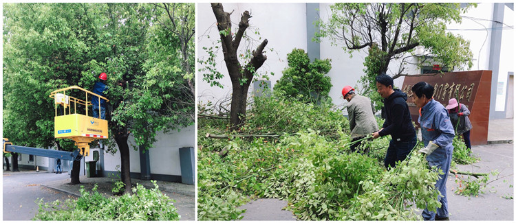 在修剪的過程中,由于樹木參差不齊,有的已經(jīng)觸碰到電線,非常危險(xiǎn),處理起來比較困難,設(shè)備租賃公司黨支部為了解決這一難題,采取應(yīng)對(duì)措施----租借升降車,工作人員利用專業(yè)油鋸在保證自身安全的情況下,對(duì)樹木進(jìn)行修剪,遇到較高、粗壯的樹枝也是一遍又一遍耐心的鋸割,大伙兒有的鋸樹枝、有的搬木頭、有的清掃垃圾……分工合作,相互配合,干的熱火朝天、忙的不亦樂乎,一個(gè)個(gè)汗流浹背。最后將修剪下來的大樹枝被及時(shí)清運(yùn),保證新基地行人車輛的安全通行。經(jīng)過一天緊張有序的工作,整個(gè)新基地的環(huán)境煥然一新。