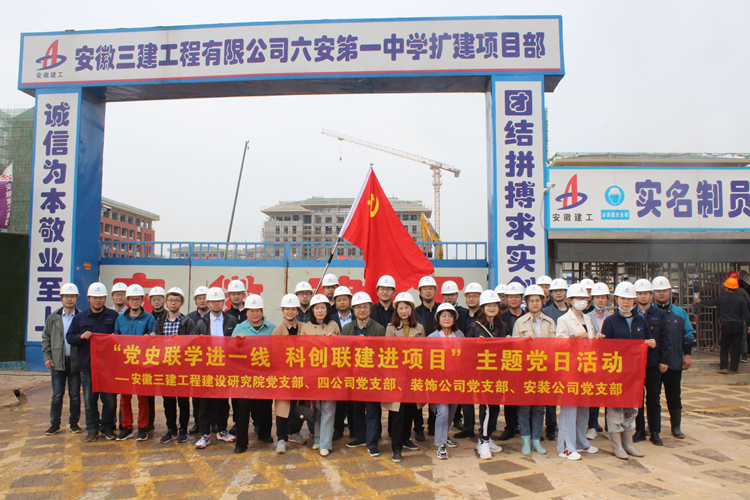 為認真落實公司黨史學習教育有關要求,4月27日,來自安徽三建工程建設研究院、裝飾公司、安裝公司、四公司黨支部45名黨員,項目青年技術管理人員等在六安一中項目開展了“聯學黨史進一線,聯建科創進項目”主題黨日活動?;顒泳o扣學黨史、悟思想、辦實事、開新局的要求,為項目一線送來了一堂黨史課,圍繞項目技術創新開展了座談,四個支部還簽署黨建科技創新聯盟公約,為下一步黨建促創新打下了堅實的組織基礎。