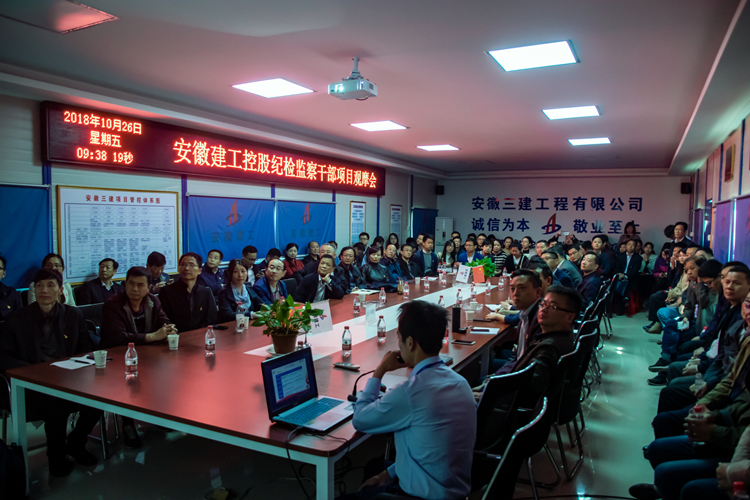 2018年10月26日上午,集團公司紀委書記宋志華率集團各子、分公司紀檢監察干部培訓班成員100余人到安徽三建八公司承建的市青少年綜合實踐基地項目,觀摩調研項目黨建和廉潔建設。