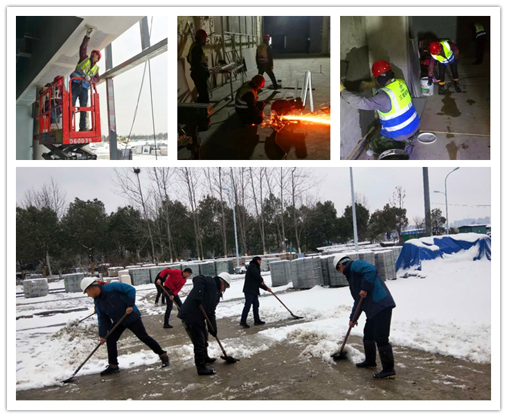 經過一夜的大雪,28日大年初四的安徽創新館項目披上了一層白衣,當全國人民還沉浸在歡度春節的喜慶氛圍里,百余名施工人員已經在項目施工現場緊張而有序的忙碌。為了全面貫徹落實集團公司一屆六次職代會精神,完成2019年集團公司的既定目標,保障工程進度和更好地推進項目建設工作,和安徽創新館一樣,安徽三建的許多項目部和工作崗位已經陸續提前復工,各項工作也在有序開展中。截止到2月16日, 四公司、八公司、九公司、安裝公司、基礎公司以及西北公司、海南公司等數十個項目已經提前復工,投入到緊張的建設中。大家力爭為2019年各項工作開好頭,為實現完成全年目標奠定基礎。