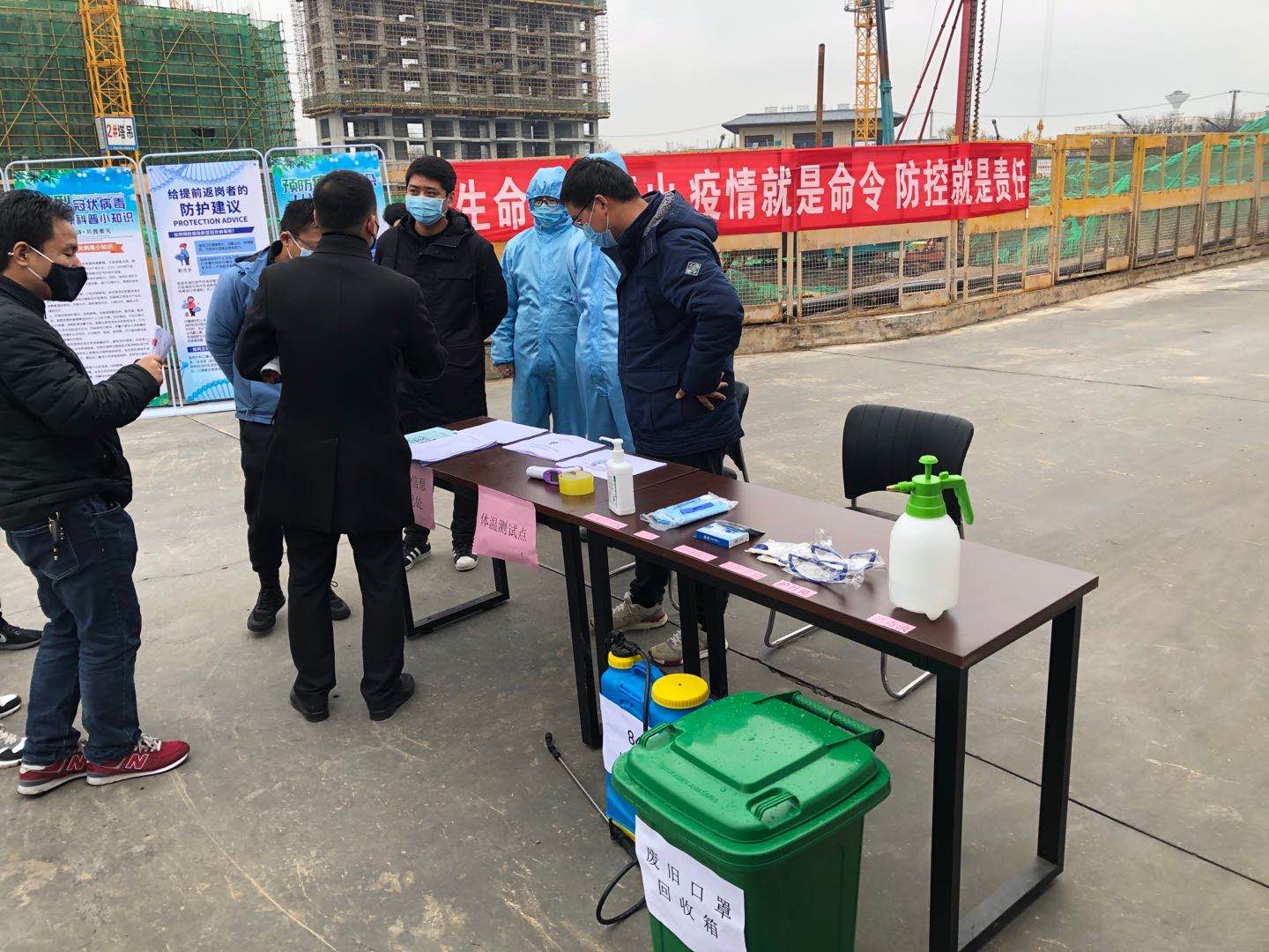 八公司積極配合合肥市疫情防治工作,春節期間加班將原合肥市二院項目辦公區移交給市二院作為隔離病房使用。為盡快復工,2月24日,項目部與市二院負責人溝通協商重建臨時辦公區。2月28日,項目負責人高瑞凱帶領項目部全體管理人員突擊辦公區建設,3月2日,辦公區完成建設,將施工現場與市二院高危區域徹底隔絕,順利實現復工。為做好項目防疫宣傳教育工作,3月3日項目部聯合市二院疫情防治辦技術專家為農民工開展“疫情防治教程”培訓,為農民工兄弟講解“消毒”、“洗手”、“口罩佩戴”、“交通出行”等正確做法,普及防控知識,確保廣大職工健康安全。