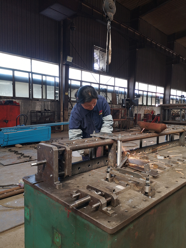 5月4日,輕鋼龍骨公司二車間師傅加班制作新產品附著式升降腳手架(爬架)的部件導軌。