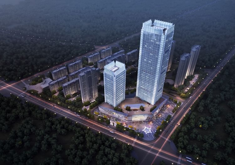 金寨“城市之光”超高層項目位于六安市金寨縣,東臨響山寺路,南至懸劍山。項目建設(shè)方是明發(fā)集團,總建筑面積約16萬平方米,合同總價約4.5億元,由2層地下車庫、3層裙房及A棟超高層辦公和酒店、B棟高層辦公兩棟主體塔樓組成。其中A棟:42層,總高度188米;B棟:18層,總高度108米,形成超高“雙子樓”格局。