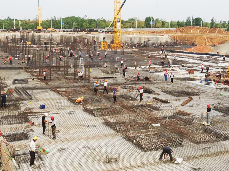 項目部首先遭遇的是史上最長的梅雨季。連續雨天是基礎施工的天敵。常常剛挖出來的基礎,一場急雨過后,積水淤泥遍布。迎難而上是安徽三建人的傳統。憑借多年的施工經驗,項目部立即形成了一套應對方案:配備了80臺大功率抽水泵,采取挖機配合人工清淤,確保基礎施工成效。小雨搶著干;大雨防積水;白天下雨晚上干,項目部日夜不停開挖,確保了基礎施工進度。