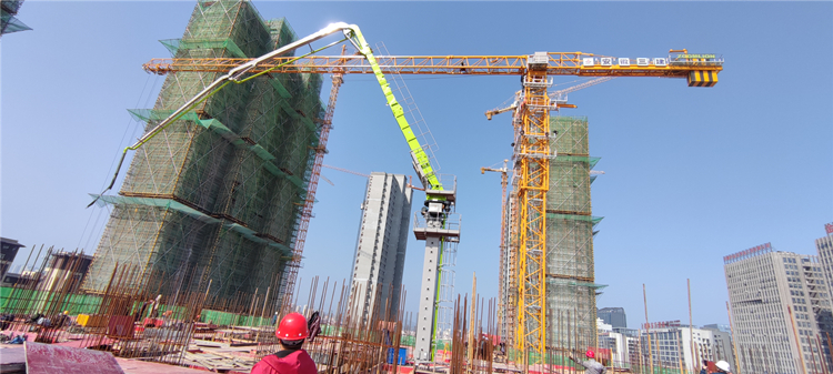 HGC33D-3R布料機機器高度23米,旋轉半徑可達33米,工作時只需1人即可完成所有操作,且機器服務年限長。此前該設備常用于核電站建設,目前國內僅有20余臺在民用建筑施工中使用。采用該設備可以大幅節約人力成本、提高混凝土施工質量、縮短施工工期。目前每層標準層面積將近2000平方的金寨超高層項目,僅需一臺布料機就可以全面覆蓋整個施工面,而使用傳統布料機則需要四臺;較傳統布料機,使用新型布料機每層澆筑混凝土所需時間可節約時間10個小時,在砼澆筑上可為整體結構工期縮短近一個月時間;此外,該布料機還能快速有效的實現高低標號混凝土澆筑的穿插,減少混凝土的冷縫,能有效確?;炷临|量。